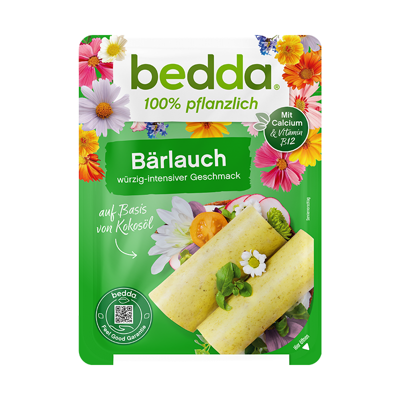 Wasser, modifizierte Stärke, 20% Kokosöl, 10% Bärlauch, Salz, Calciumcitrat, Knoblauch, natürliche Aromen, Farbstoff: Carotin, Säuerungsmittel: Citronensäure, Vitamin B12.